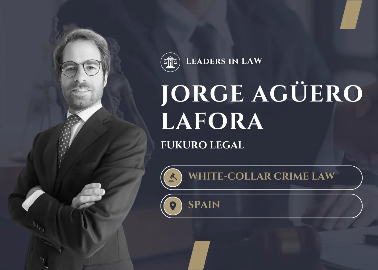 En Fukuro Legal queremos compartir con satisfacción que nuestro socio director, Jorge Agüero Lafora, ha sido reconocido por Leaders in Law como experto exclusivo en Delitos Económicos (White Collar Crime) para España.